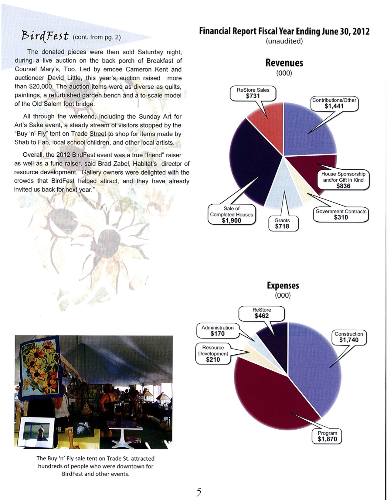 The annual report below includes a statement from the Executive Director, Sylvia Oberle, and a complete list of the FY 2012 donors.