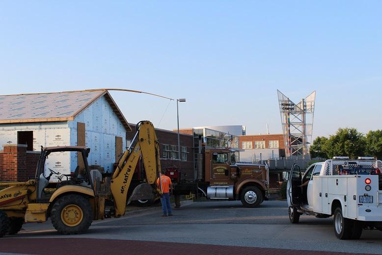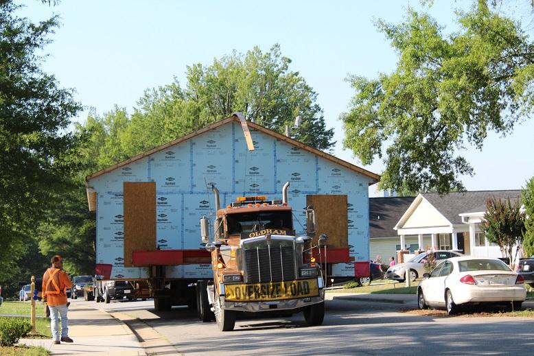 Every year the Winston-Salem Forsyth County Schools’ Career Center carpentry students get a hands-on learning experience by building a Habitat house. And at the end of the school year, it’s moved from the Career Center campus to its new location, where it will be finished out this summer. Forsyth Technical Community College students in the building trades programs get to assist with installing systems.