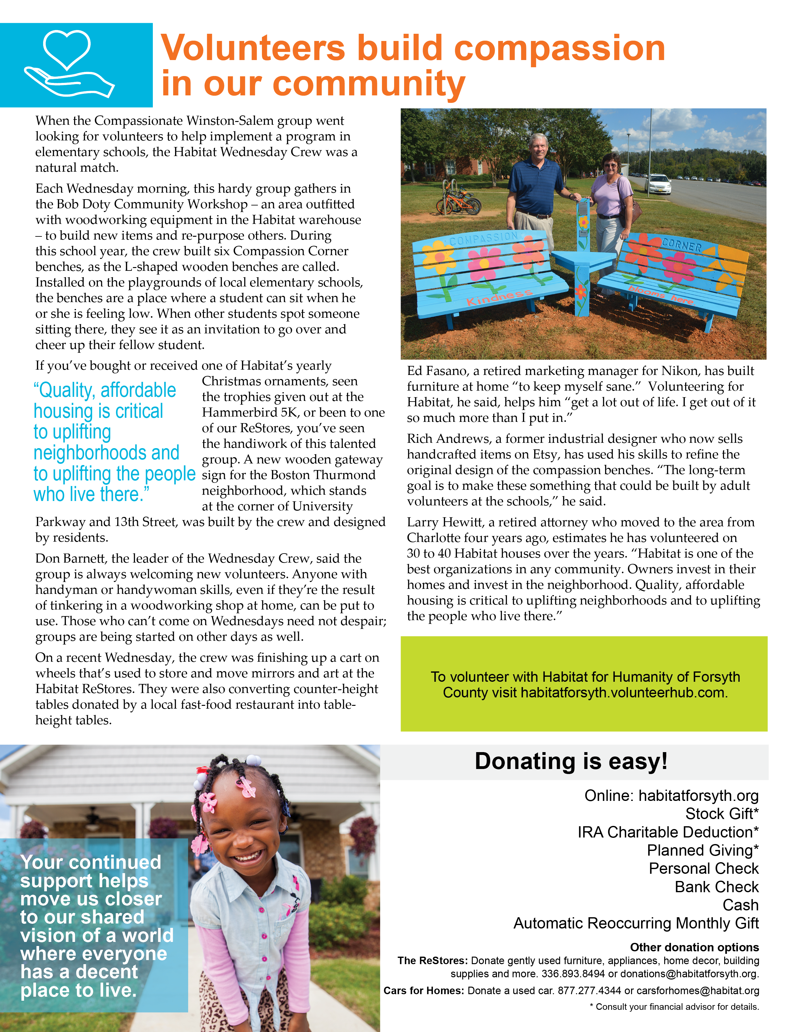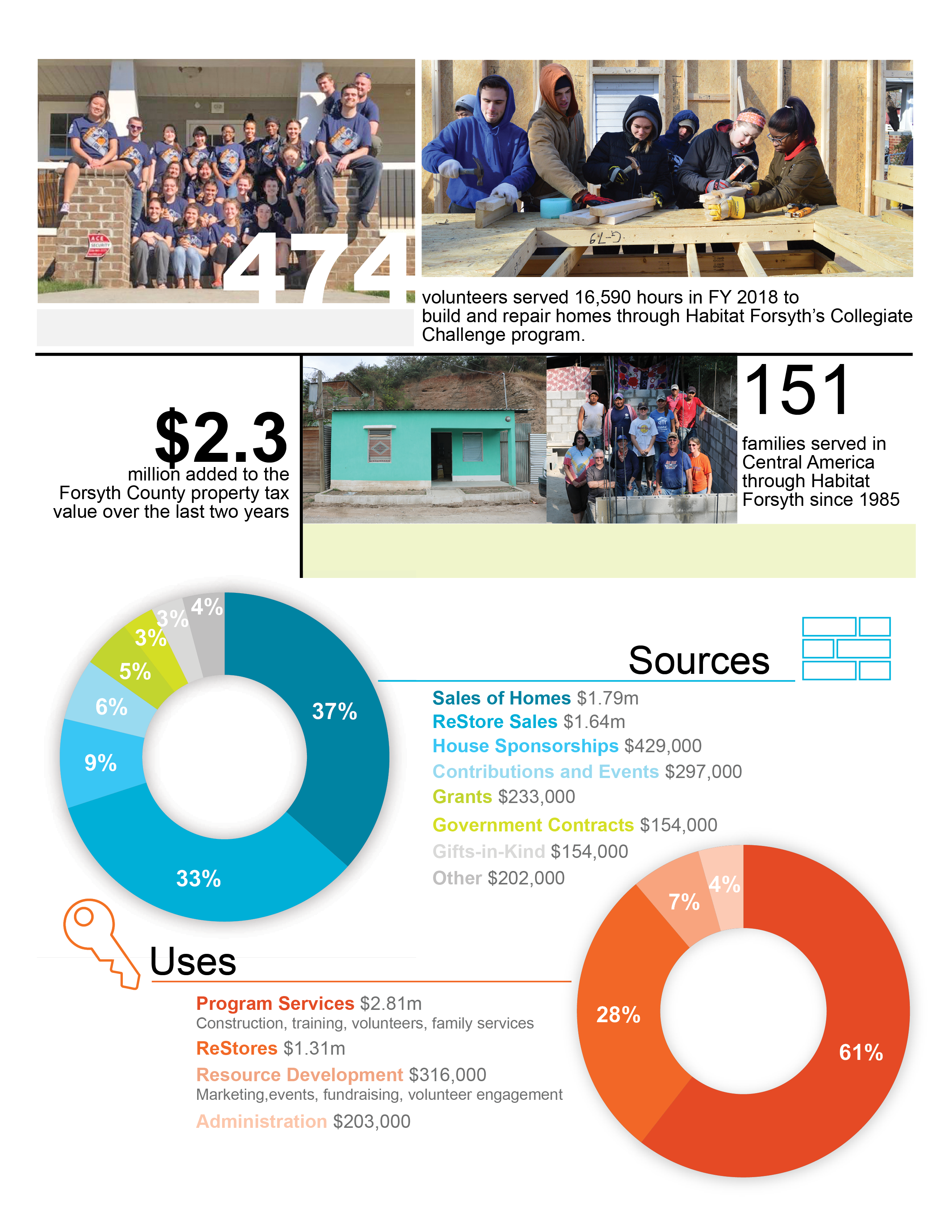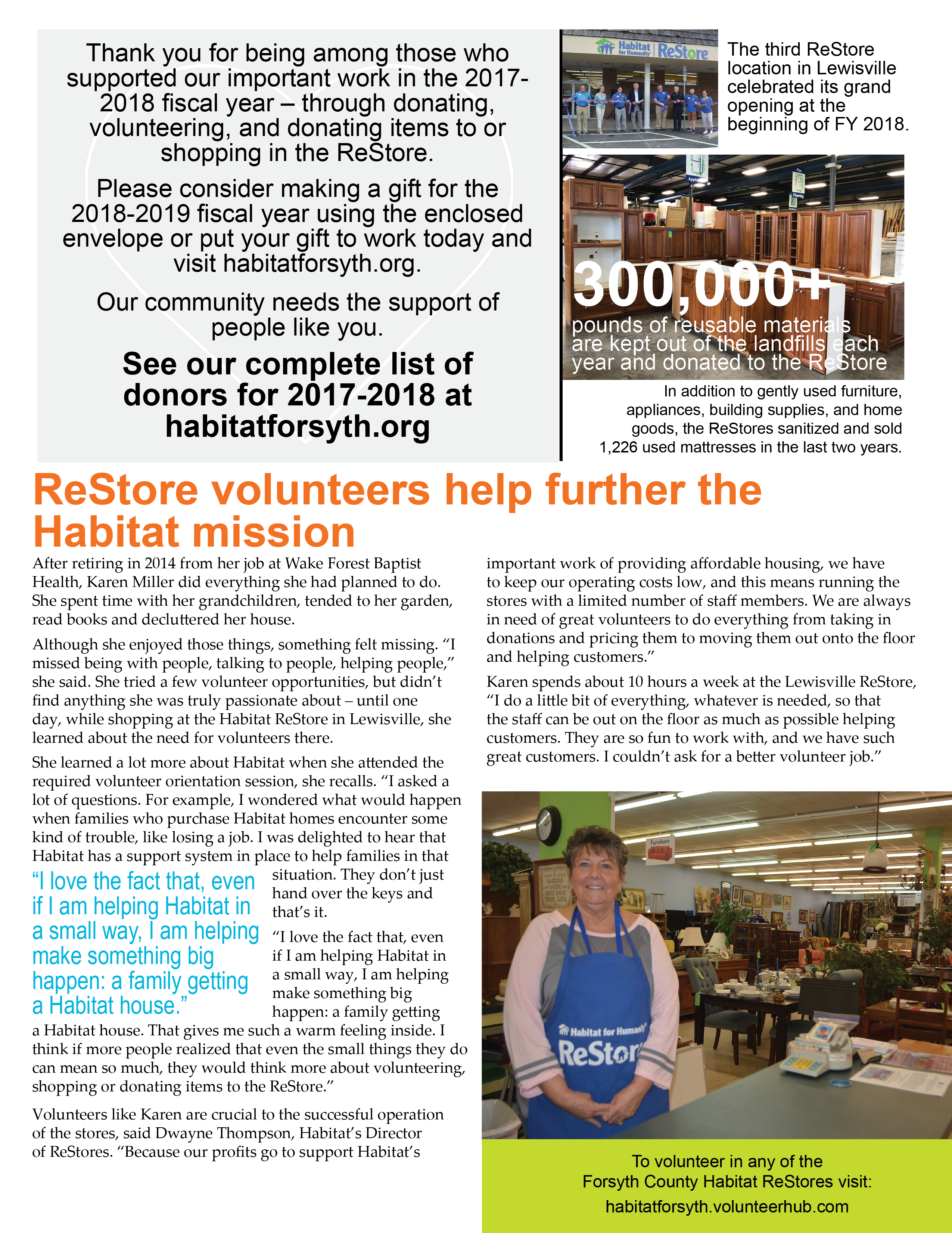 Habitat Forsyth was proud to celebrate the 31 hardworking families who were a part of our homeownership program as well as the 11 homeowners who paid off their mortgages during the 2018 fiscal year. Our campus was host to 474 volunteers who served 16,590 hours to build and repair homes through the Collegiate Challenge program. Mr. Powell, a Habitat homeowner since 2012 was also named North Carolina’s Firefighter of the year.